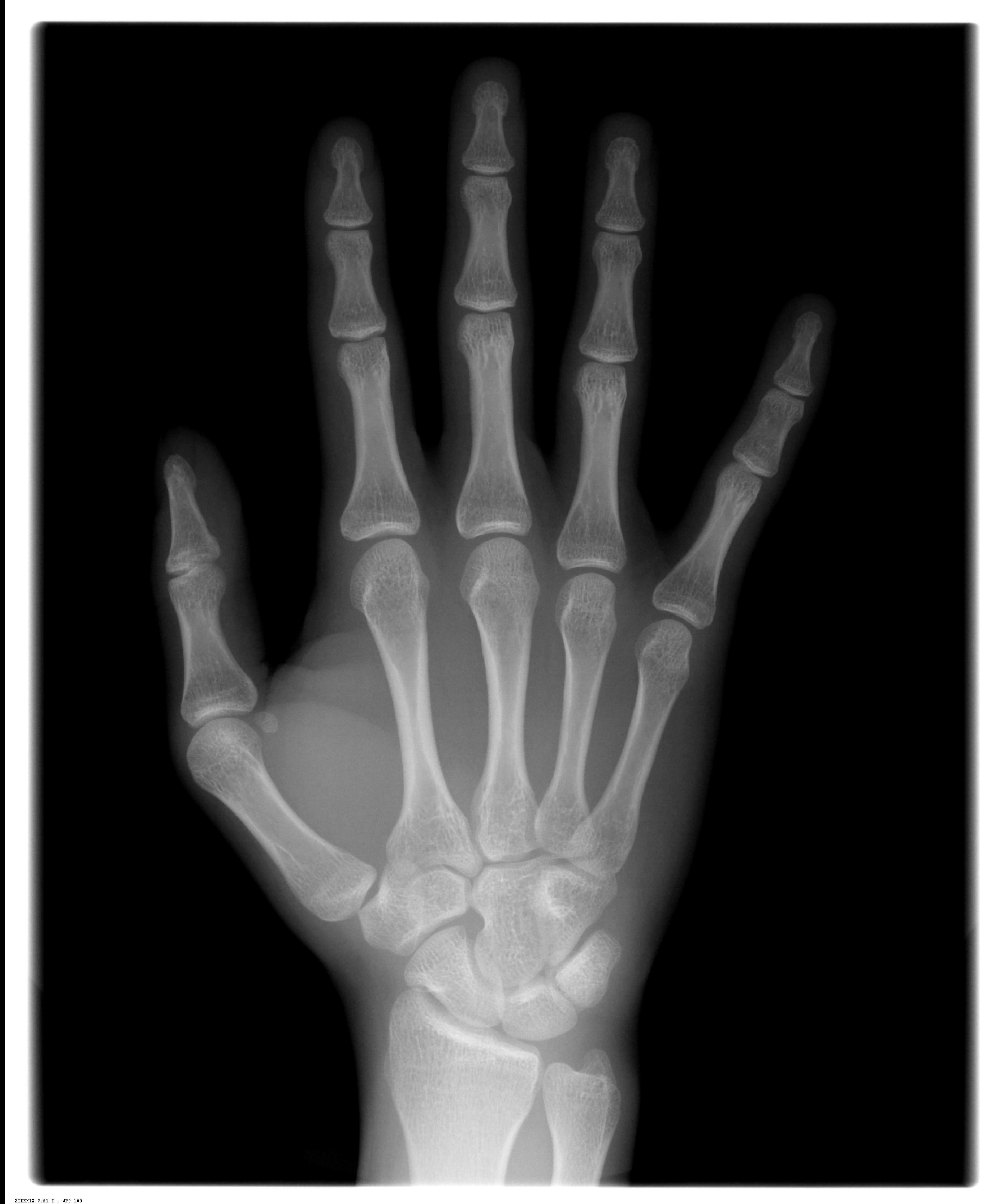 Técnica Radiográfica Extra bucal, executada na região de mão e punho que auxilia o Cirurgião-Dentista a avaliar o crescimento ósseo do paciente com relação à idade cronológica do mesmo.